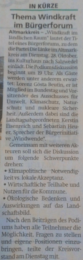Bürgerforum in Salzwedel – Thema: „Windkraft im ländlichen Raum