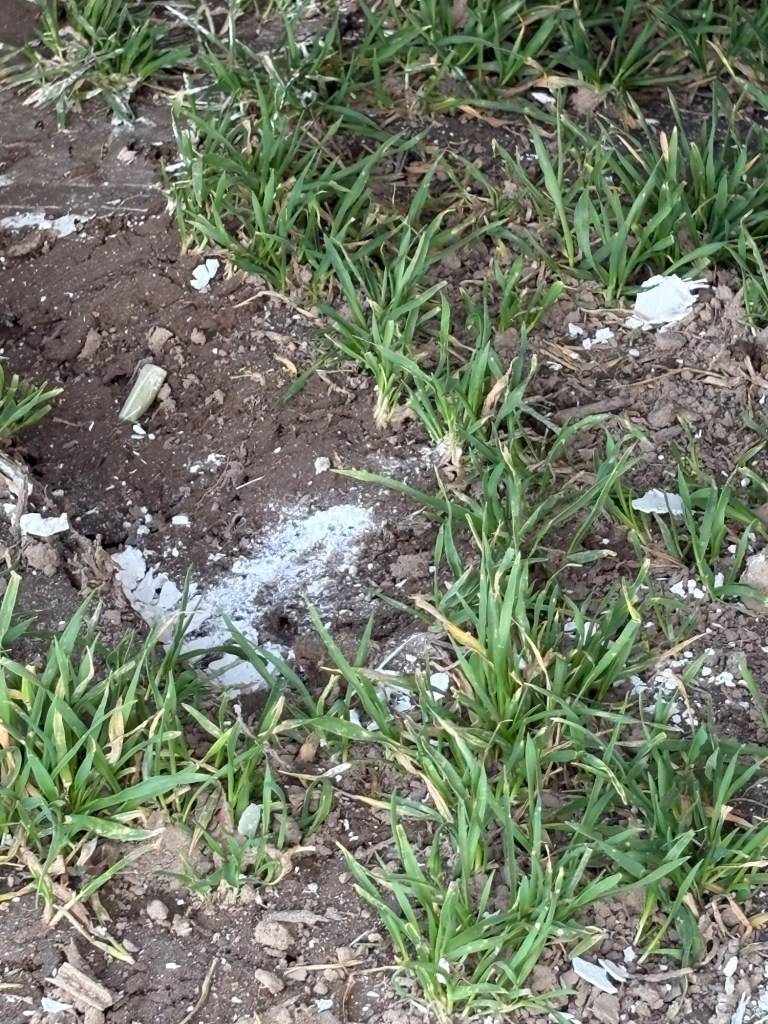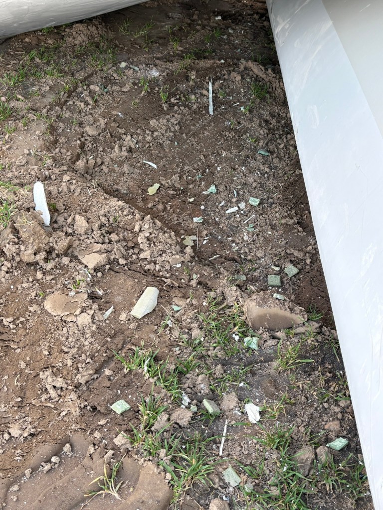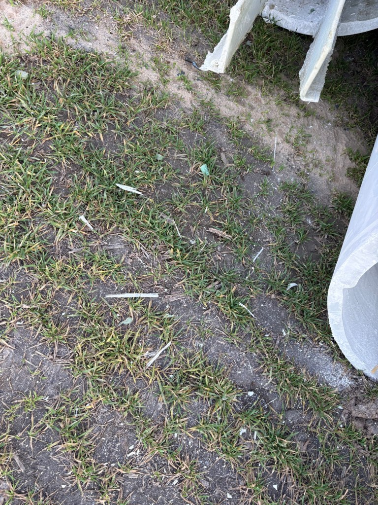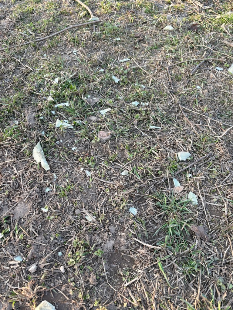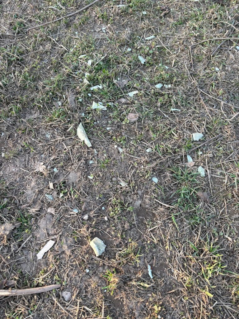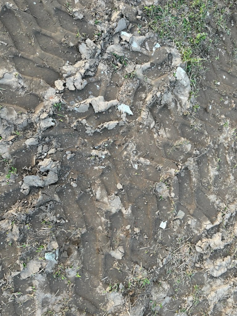 Auf dem Feld liegen viele Kleinteile und Späne davon. Unglaublich!